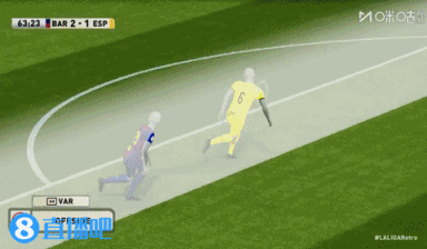 差之毫厘!转播回放给出巴萨第三球被吹的越位划线示意图